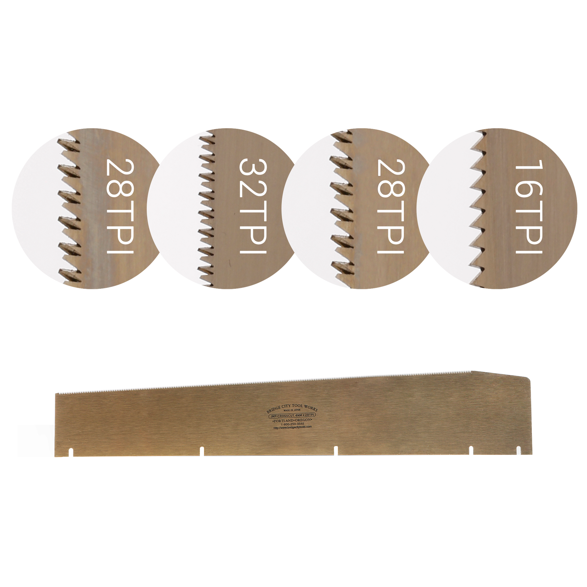 Crosscut B Blade: .3mm x 32 tpi; Used with softer woods of smaller dimensions.