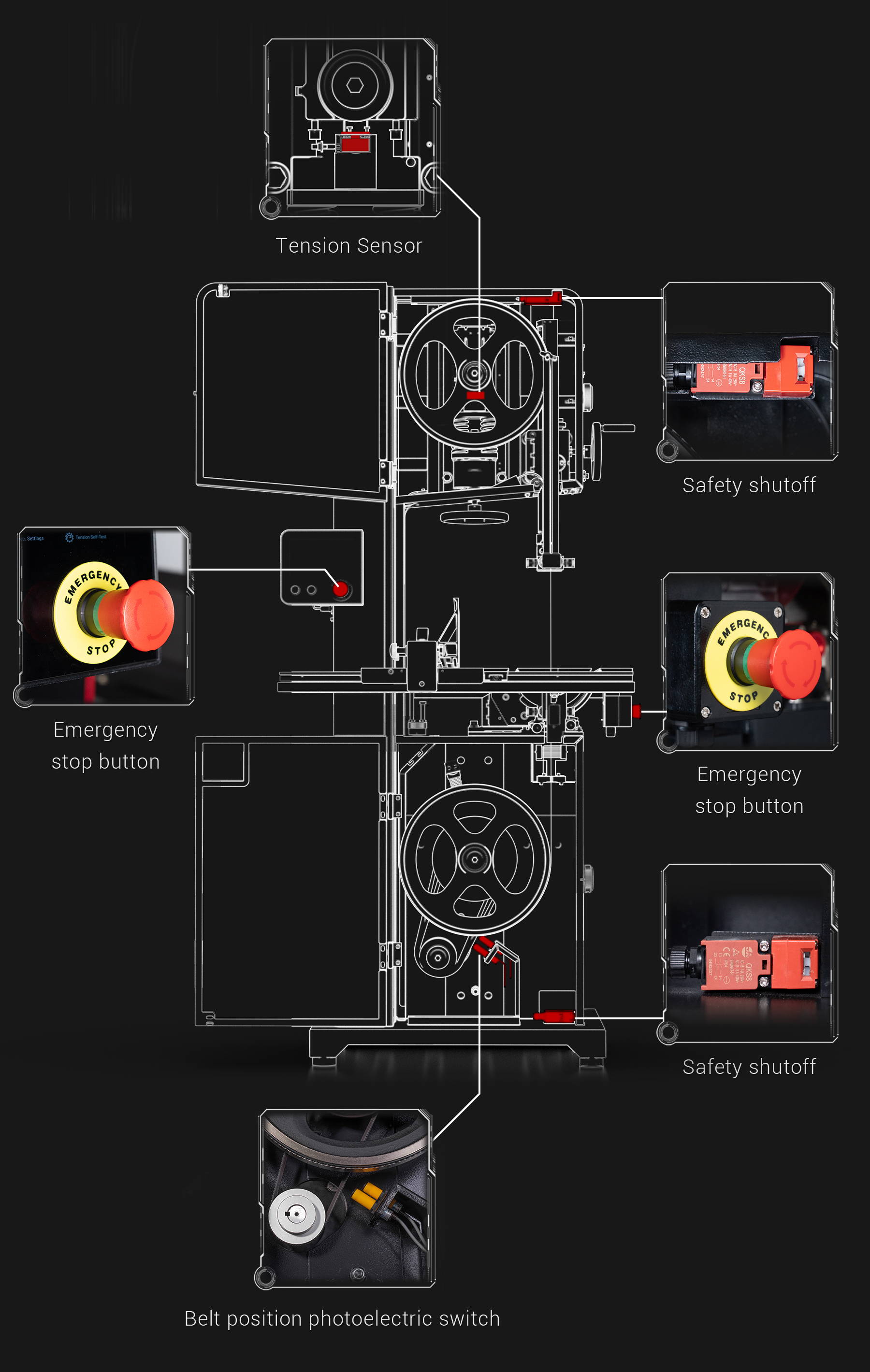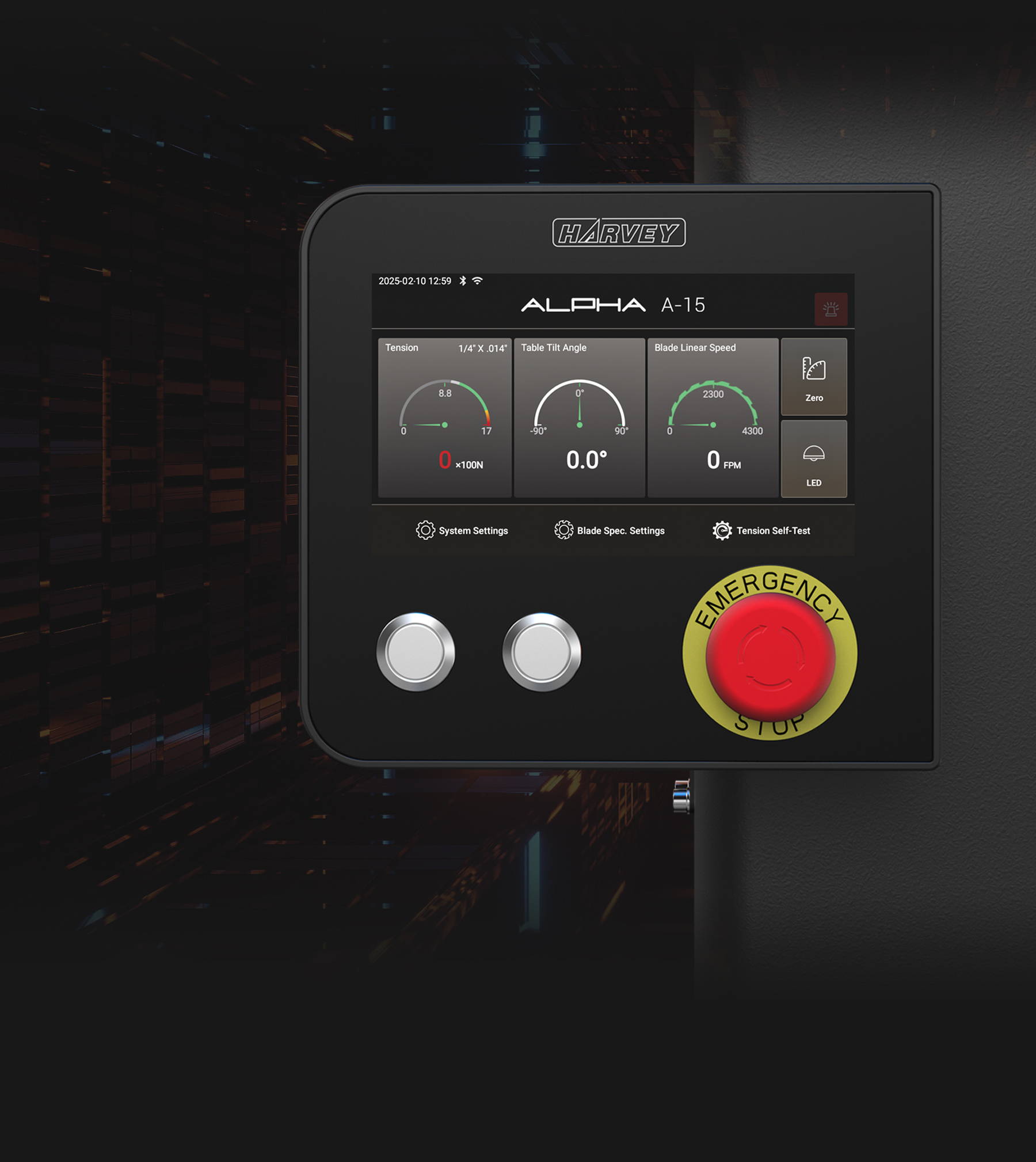 La scie à ruban intelligente A-15 est équipée d'un écran tactile intelligent de 7 pouces qui offre une commodité et une précision inégalées. Ce système intelligent fournit des données en temps réel sur la tension de la lame, l'angle d'inclinaison de la table et la vitesse de la lame, tout en offrant une détection intelligente des défauts afin de garantir la sécurité et la fiabilité de chaque opération.