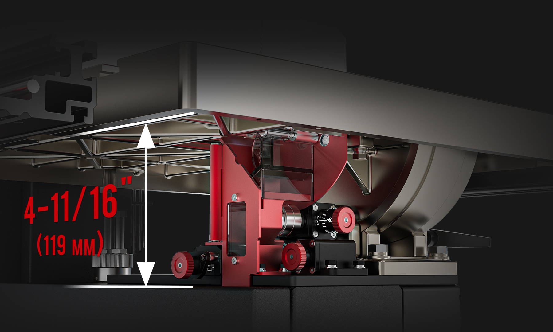 Empêche également le balancement du tourillon pour un INCLINAISON DE LA TABLE précise et un alignement parfait entre la lame et la table.