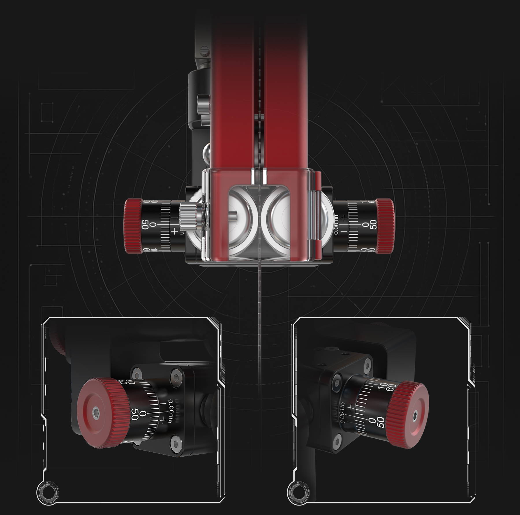 avec échelles de réglage intégrées (précision de 0,02 mm/0,001'')