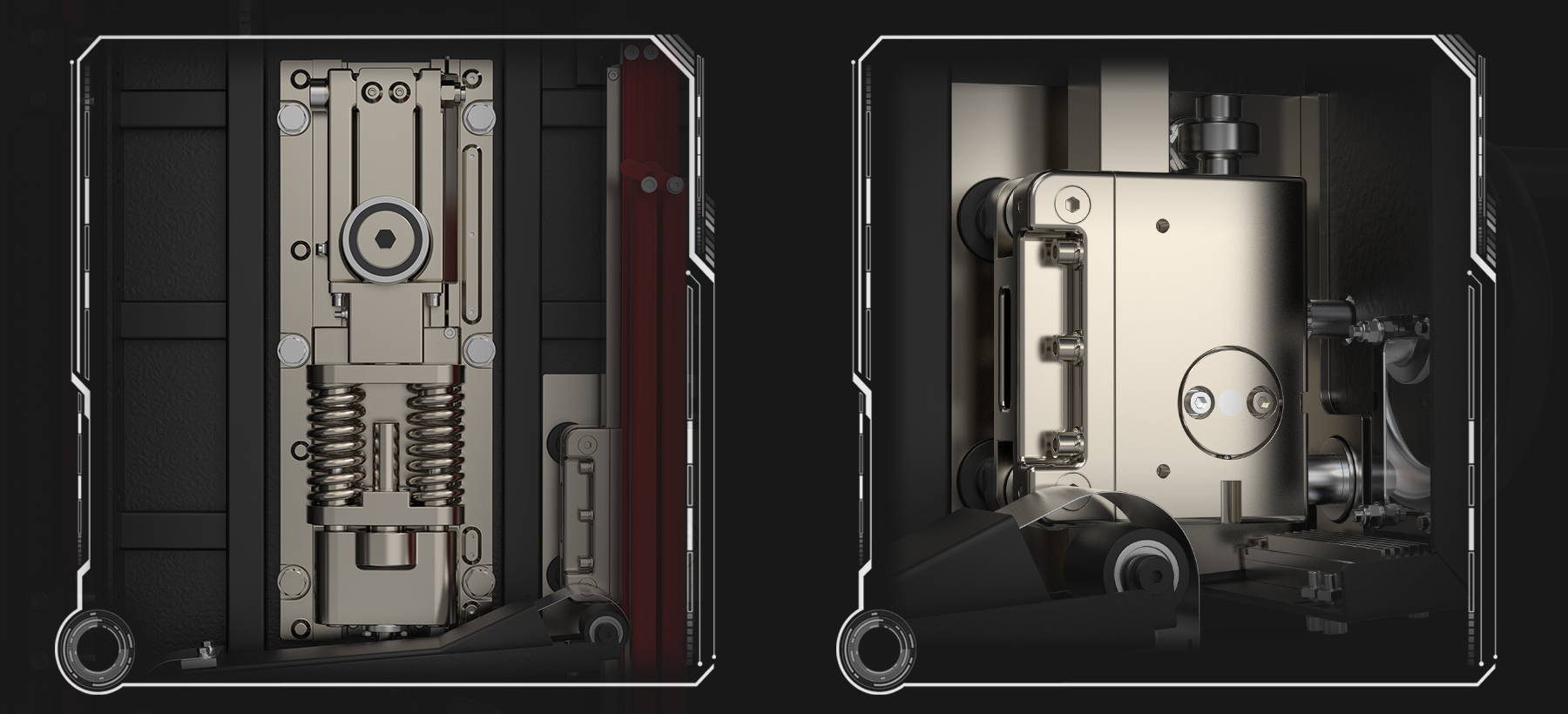 Les ressorts à double support fournissent une tension pouvant atteindre 6000 N, ce qui améliore la durée de vie de la lame et la précision de coupe.