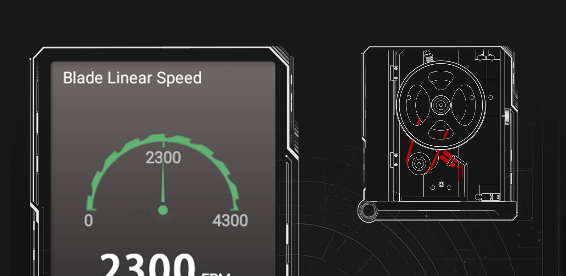 Position de la courroie et vitesse linéaire de la lame détectées par le commutateur photoélectrique