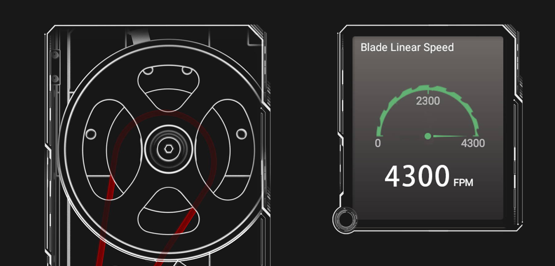 Affichage en temps réel de la vitesse linéaire des pales