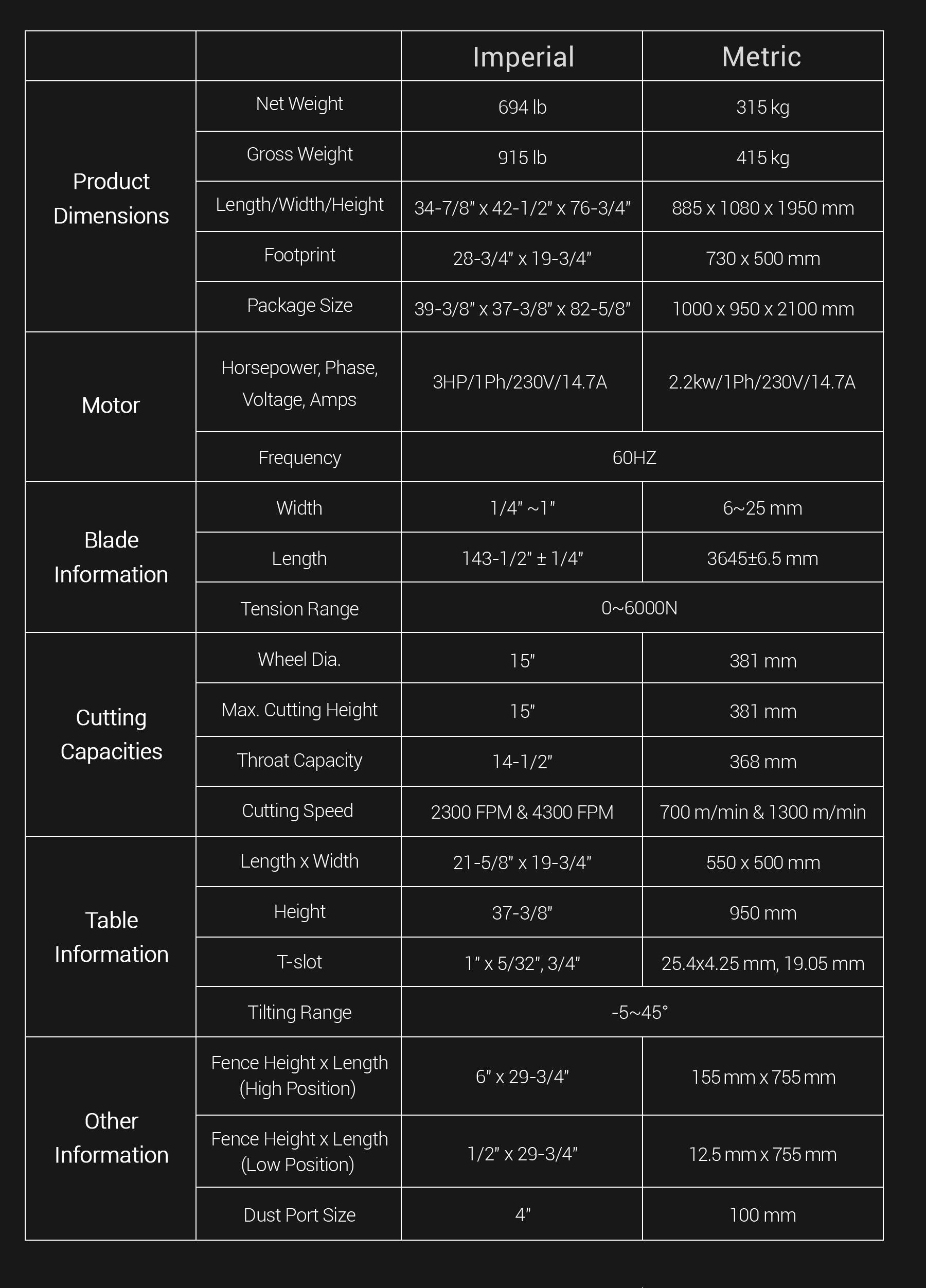 Scie à ruban intelligente 3 HP 15 pouces
